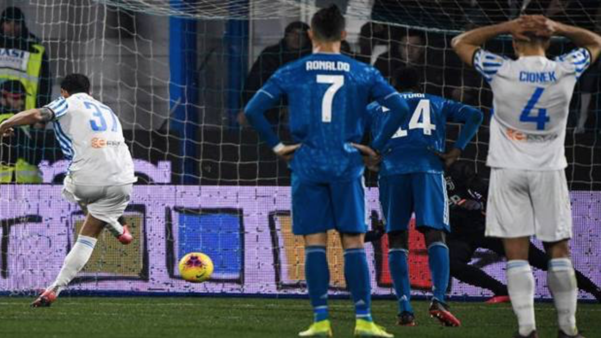 迷球2月23日讯 北京时间2月23日凌晨01:00,2019-2020赛季意甲联赛第25轮比赛继续进行,尤文图斯客场挑战斯帕尔。上半场,C罗进球被VAR取消,随后,夸德拉多助攻C罗破门,葡萄牙前锋连续11轮联赛进球追平个人纪录,迪巴拉远射中框;下半场,迪巴拉助攻拉姆塞挑射扩大比分,鲁加尼送点,佩塔尼亚点球扳回一球,C罗任意球中框。最终,尤文图斯客场2-1战胜斯帕尔。此役过后,尤文图斯19胜3平3负